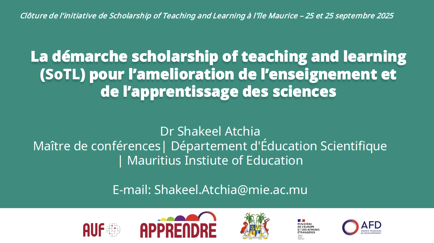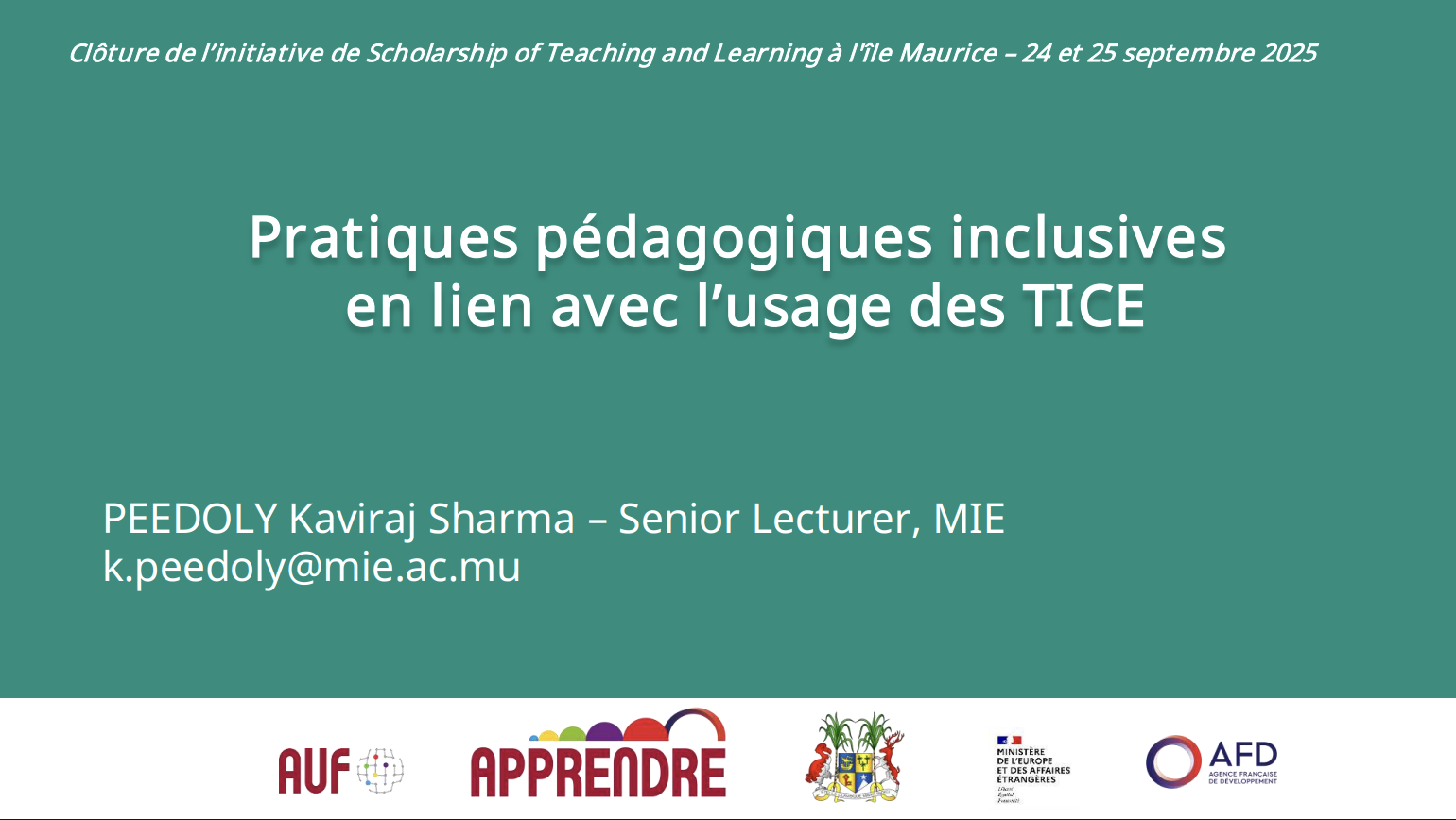 Bienvenue sur la page dédiée aux JNIP 2025 à Maurice ! Vous y retrouverez l’ensemble des interventions et supports de présentation partagés lors de l’événement. Découvrez les actions concrètes menées depuis mars 2025 par les six communautés de pratique APPRENDRE, dans des écoles primaires et secondaires, autour de thématiques essentielles : inclusion, gestion de classe, enseignement des sciences et des mathématiques, TICE et évaluation des apprentissages. Laissez‑vous inspirer par ces initiatives innovantes pour enrichir vos projets éducatifs et explorer de nouvelles façons d’apprendre et d’enseigner !