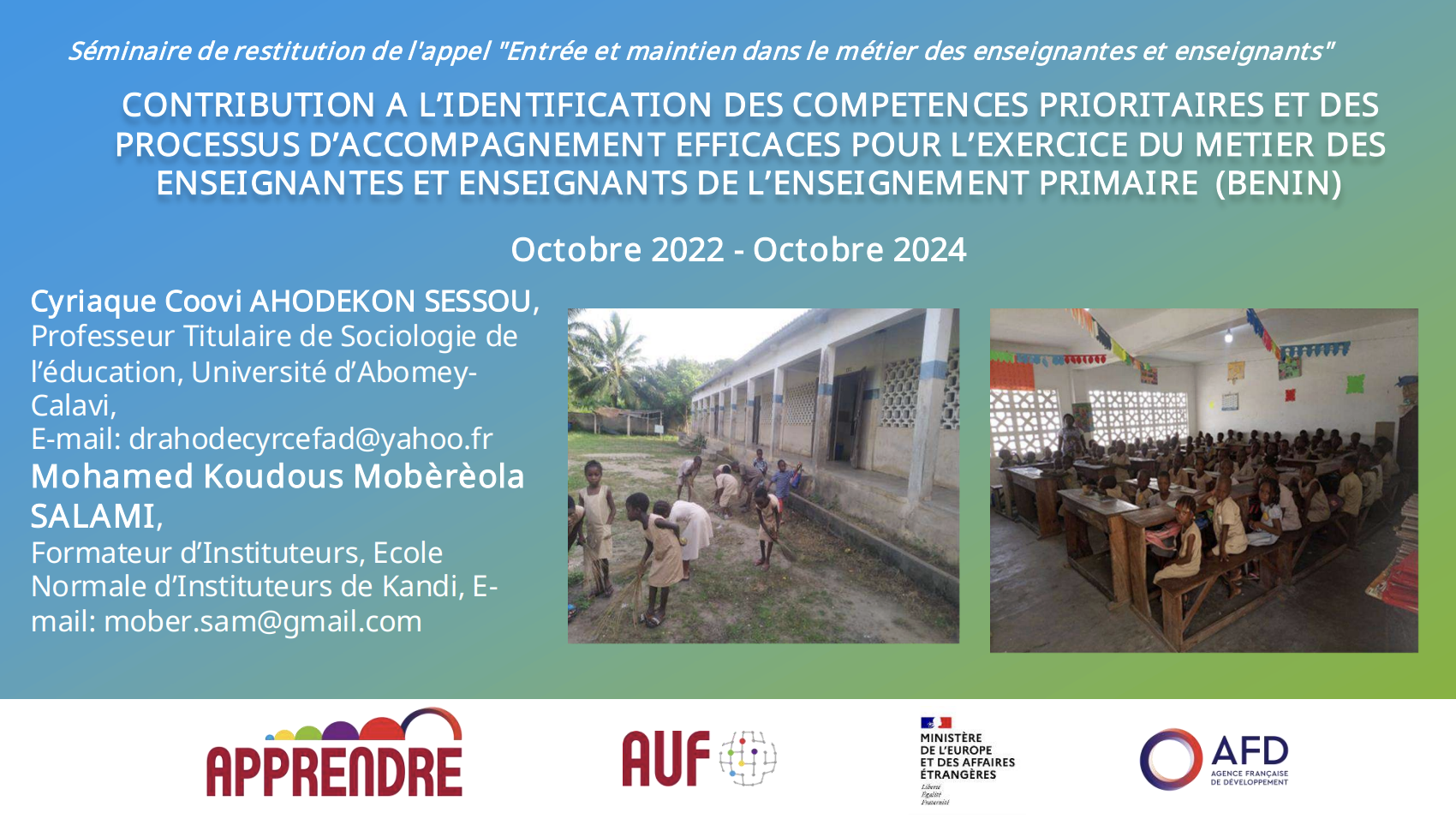 PPT Bénin « Contribution à l’identification des compétences prioritaires et des processus d’accompagnement efficaces pour l’exercice du métier des enseignants du primaire »
