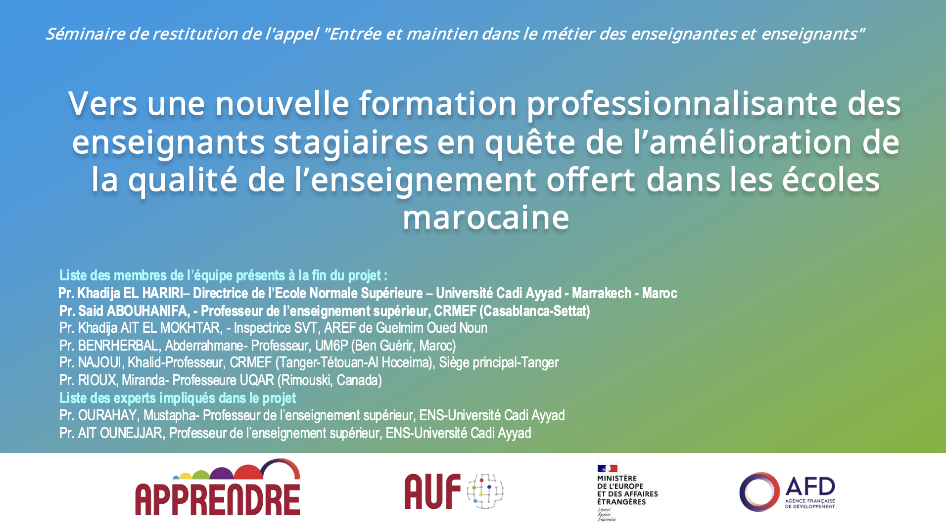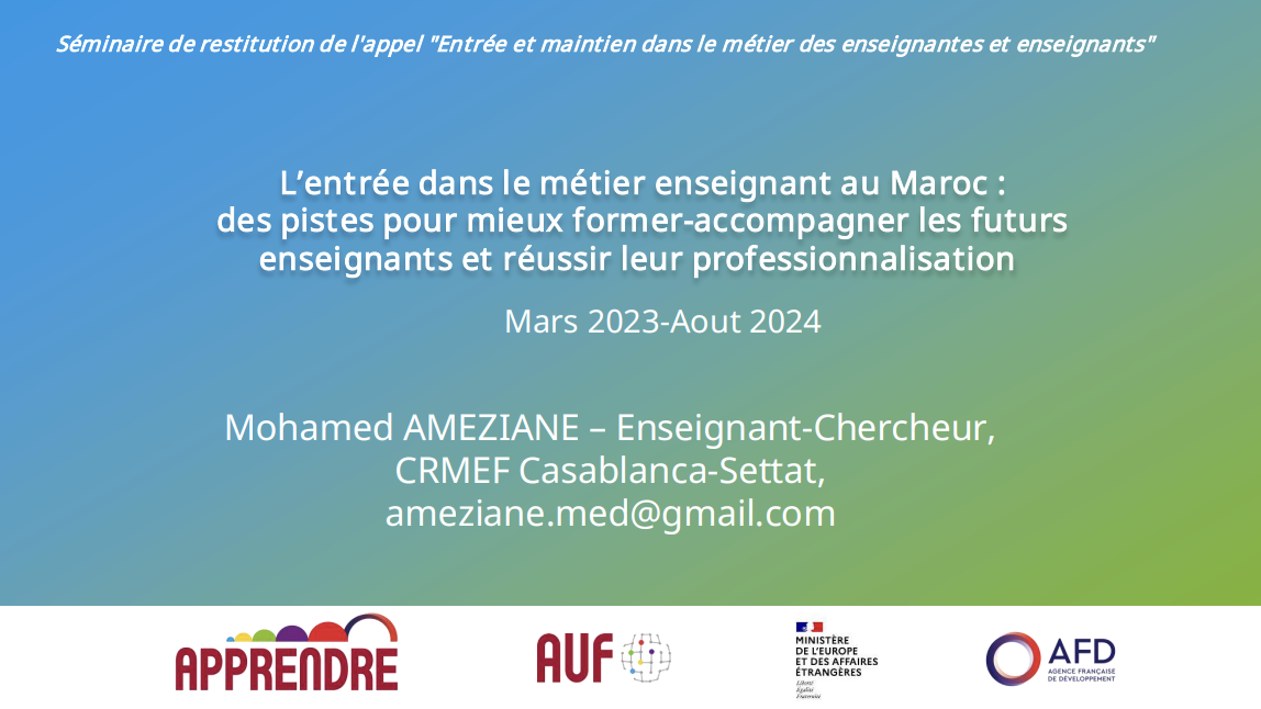 PPT Maroc : « L’entrée dans le métier enseignant au Maroc : pistes pour mieux former et accompagner les futurs enseignants et réussir leur professionnalisation »