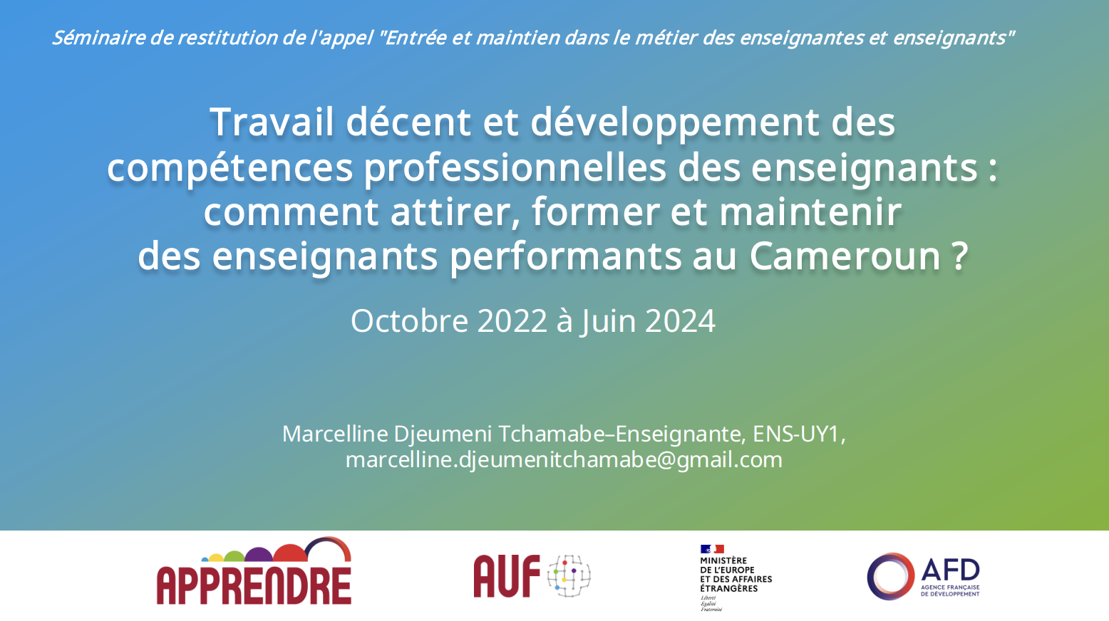 PPT Cameroun : « Travail décent et développement des compétences professionnelles des enseignants : attirer, former et retenir des enseignants performants »