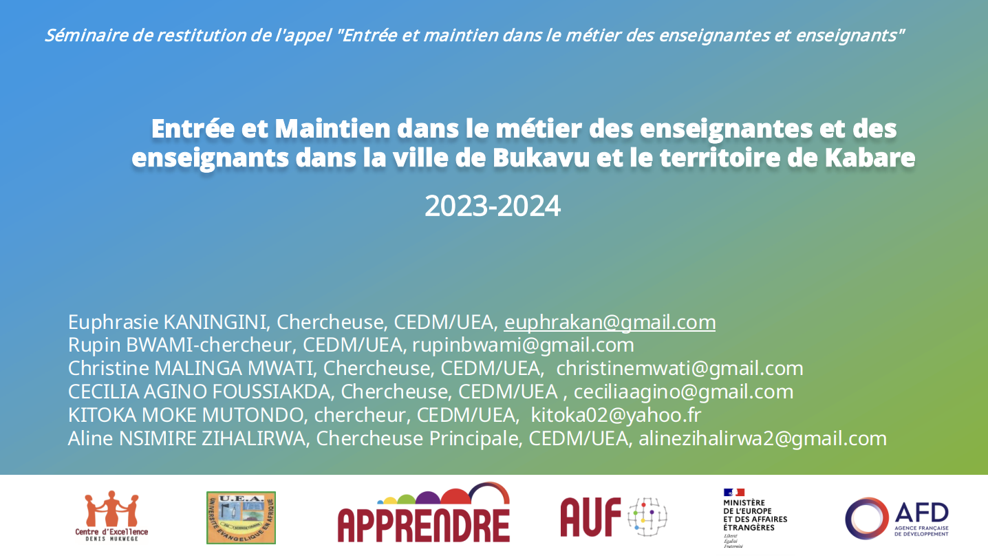 PPT RDC : « Déterminants de l’entrée et maintien dans le métier d’enseignant·es primaire et secondaire dans la province du Sud-Kivu »
