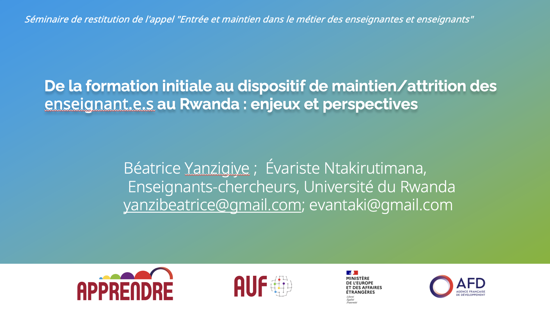 PPT Rwanda : « De la formation initiale au dispositif de maintien/attrition des enseignant·es au Rwanda : enjeux et perspectives »