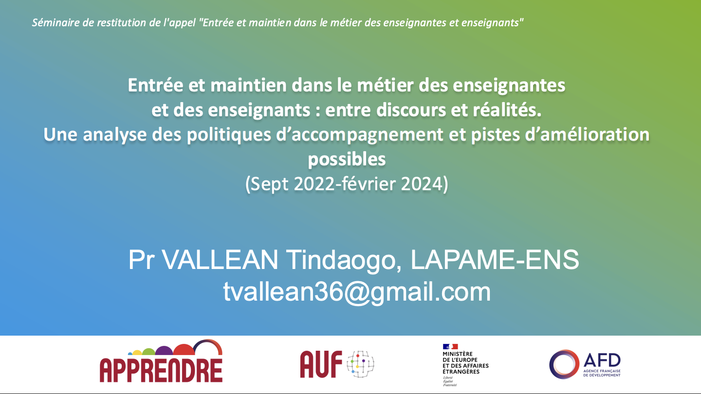 PPT Burkina Faso : « Entrée et maintien des enseignants dans le métier : analyse des politiques d’accompagnement et pistes d’amélioration »